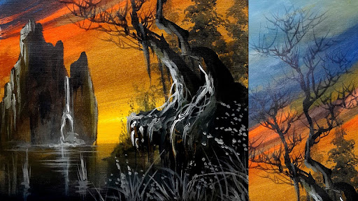 Contoh Gambar Lukisan Pemandangan Di Kain Kanvas